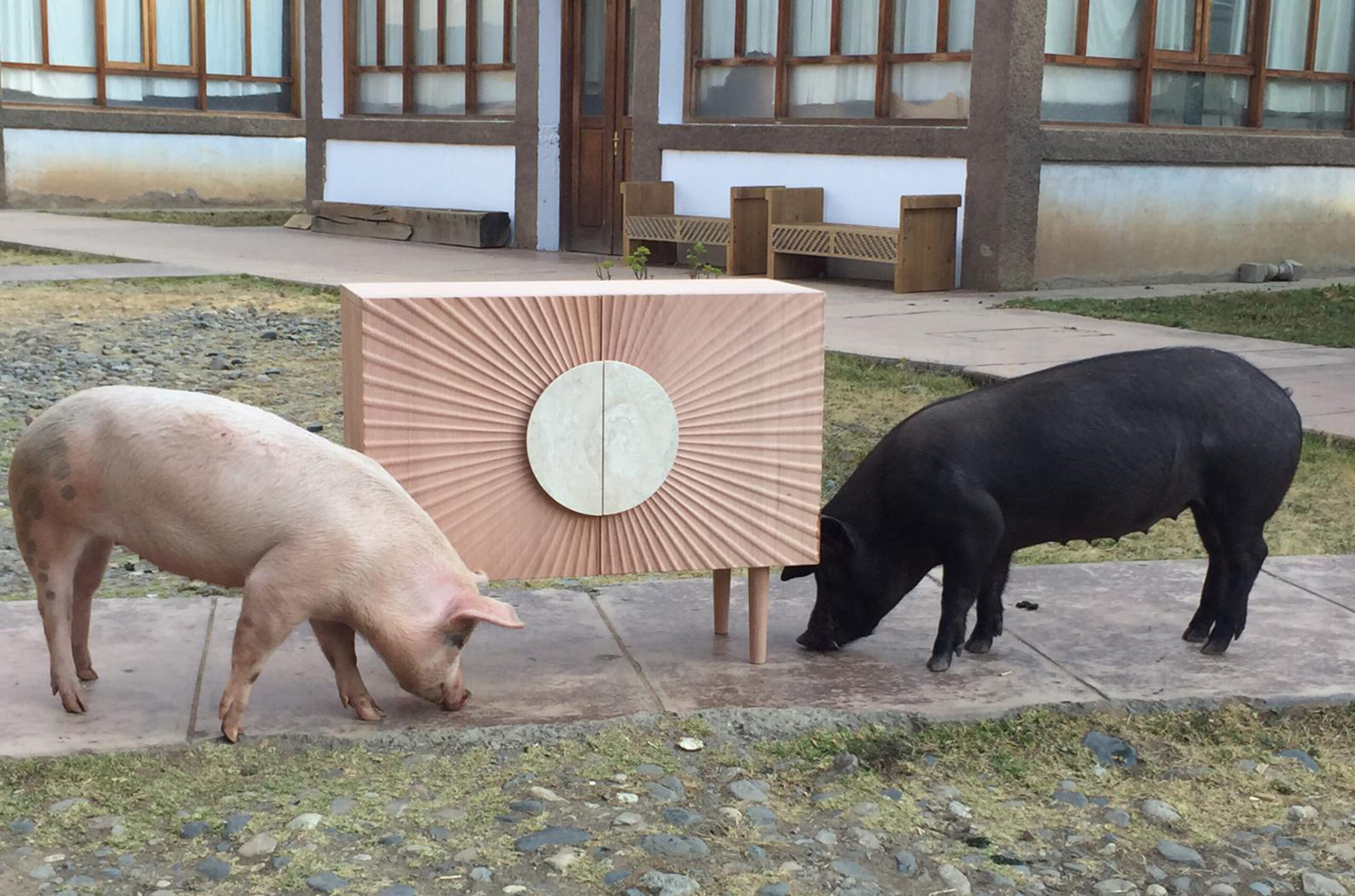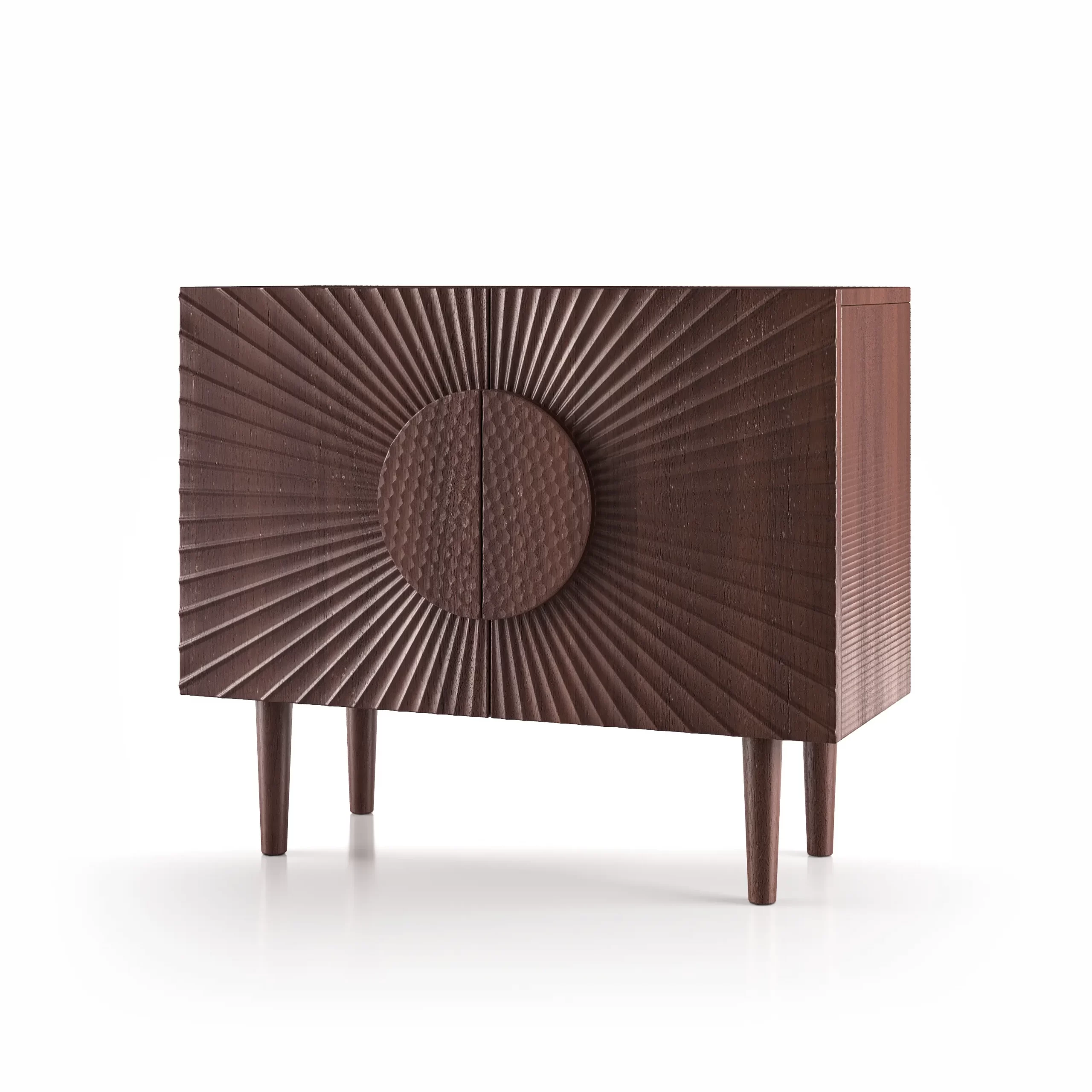 Sol is a wooden cupboard. From the central handle, made of stone or gold leaf, grooves radiate as a tribute to the sun.